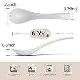 Health and safeartena white quality porcelain soup spoon is nonplastic nonmetallic and they also hold up better with the heat The pho spoon wont getting moldy bend rough and greasy or oily after wash and dry Dishwasher microwave oven freezer safe Excellent aftersale servicewe will offer highly strong package and a 90 days free replacement or refund if anything goes wrong with the dessert spoon