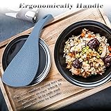 safe material the rice serving spoons are made of premium and natural wheat straw and foodgrade pp plastic not easy to break off which is heat resistant durable and safe to use nonstick the rice paddle is made with a nonstick embossing on it a nonstick rice spoon is easy to place tender and fluffy cooked rice nicely from the rice cooker to your plate