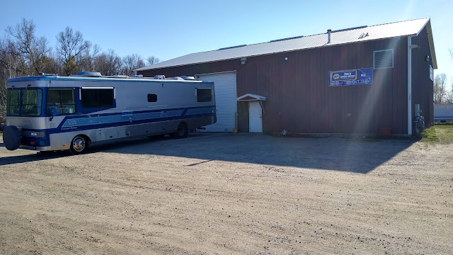 Our first stop was at Oconto Truck and Power Center, a mile or so away. This business is owned by Nick Badendick, the husband of the realtor, Amy, who sold us our home. Since Steve had the wheels off to do the calipers, he put them back on as tight as his torque multiplier tool could go, but he wanted them to be correct and safe. So they needed to be torqued to the proper specs before we could safely travel anywhere. Nick said he could torque up our lug nuts on the motorhome for us.