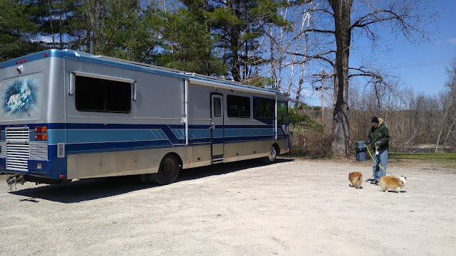 After breakfast, we took a little walk with the dogs. The winds had not let up yet, but it felt good to get out and about. Two cars came into the parking lot, so retreated back into our motorhome, to stay out of the way.