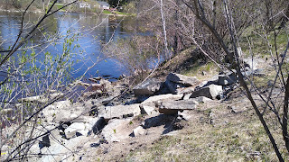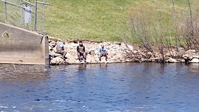 We drove over to a nice secluded little parking lot we knew of, about 10 miles away. It was just below the hydro-electric dam on the Oconto River. This is a small co-op owned power company. We used to be shareholders in the co-op when we lived down the river years ago. It's nice to see it still operating today.