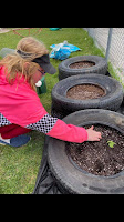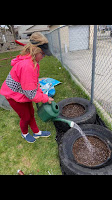 Last week, our granddaughter Chelsea had taken part in planting a little garden at the daycare, and fencing it off from the other kids and yard toys etc. The day care director sent me these photos. My oh my, what a little green thumb.