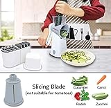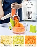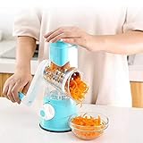 ELD - Make the cutting faster the vegetable slicer is great for cheese vegetables potatoes nuts onions chocolate for coleslaw hash browns salad pizza toppings and more High efficient hand food processor with our cheese shredder grater you can get food preparation more efficiently with minimum effort 360 degree blades cuts foods all the time when you crank the handle Multipurpose vegetable slicerfinish your food preparation with 3 interchangeable blades and makes slicing shredding and grinding easily perfect for cucumber carrot potato onion cheese chocolate garlic and even peanuts almonds