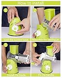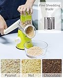 mamual and high efficiently nut chopper with this round cheese grater you can get food preparation more efficiently with minimum effort 360 degree roller cuts foods all the time when you crank the handle Shaking 1 circle equals to cut 12 times multiple functions hard cheese slicer hand crank cheese grater is great for cheese vegetables potatoes nuts onions for coleslaw hash browns salad pizza toppings and more with this handpowered rotary grater