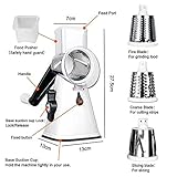 Humanized design the drumtype rotating vegetable shredder has powerful suction feet for stability on your table High quality safety this speed grater is made of 430 stainless steel and 100 bpafree abs plastic which is not only durable but also safer