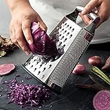 Spring Chef - Lifetime warranty satisfaction guaranteed amazing customer service Dishwasher safe Best to grate slice and zest vegetables soft and hard cheeses fruits chocolate nuts and more 4 graters in 1 1 coarse shred 2 medium shred 3 fine shred zester 4 slicer Comfortable wide handle is easytogrip to let you grate quickly without tiring