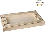 Hammont - Set of 5 charming trays there are five wood serving trays in one package each tray comes in a different size 16125x10125x15 15375x9x15 145x825x1375 1375x75x125 13x675x125 these wooden trays are used for serving spacious portability also this wood serving trays set is the best gift choice Highquality serving trays unlike some other serving trays our wood trays are made of original wood grain material to ensure durability and stability the material is environmentfriendly which adds a natural touch to any room
