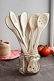 100 complete cooking set an ideal wooden kitchen utensil set that features all the essential cooking tools including spatulafried spatulaslotted spatula soup ladle spaghetti servertongstrainer spoonsalad forkmixing spoon and egg whisk Covers all your kitchen needs from stiring to cooking and with hanging holes for wall storage easily