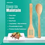 NAYAHOSE - Set of 3 cooking utensils 108large spoon 91 medium spoon 77 small spoon Meeting all your cooking needs durable solid non stick kitchen utensils With thick and strong handle perfectly sanded smooth lightweight strong and not coated Wont get warm and melt like silicone utensils or crack like bamboo spoons or bamboo spatulaThe unique handle design makes it easy to place the spoon on the edge of the bowl to avoid soiling the table 100 customer satisfactory warranty your satisfaction is always our promise we offer 100 money back guarantee if you are dissatisfied with our wooden cooking utensil set Recommended hand wash Easy to clean mild detergent and moisture Naturally dry